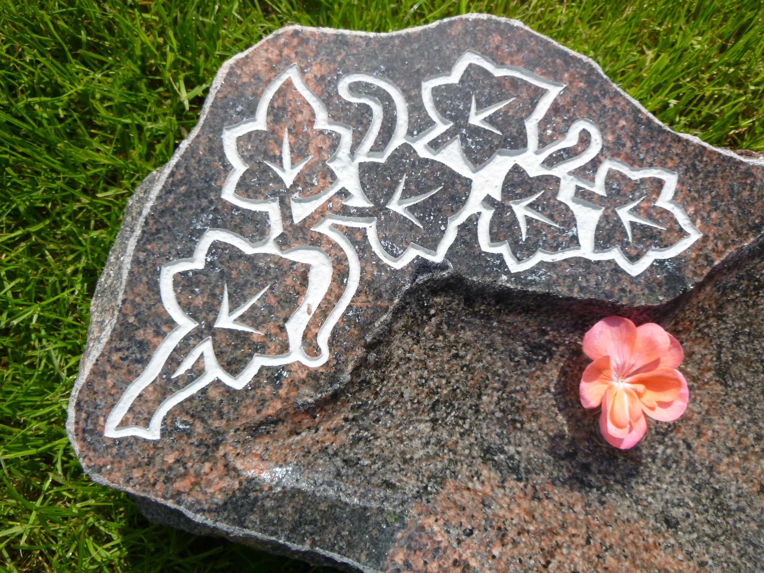- handwerklich eingehauenes Ornament mit Steinfarbe ausgeschrieben